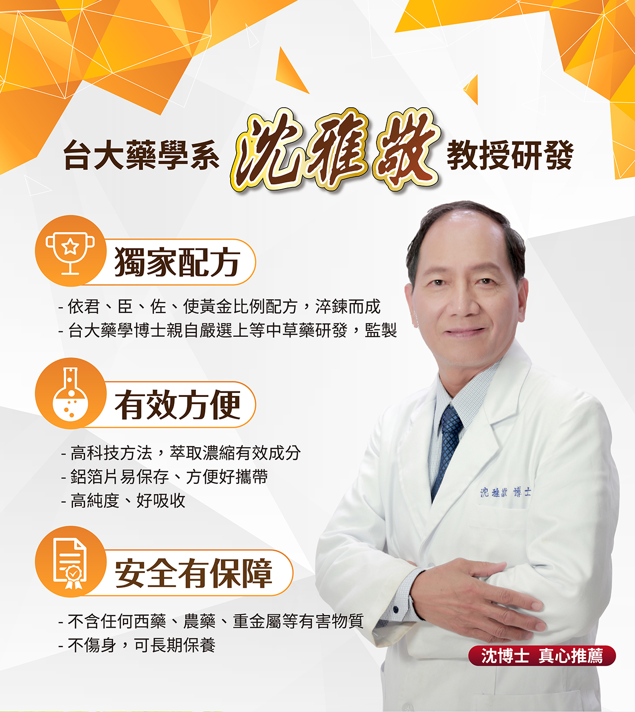 ◆ 台灣大學藥學系名譽教授沈雅敬研發