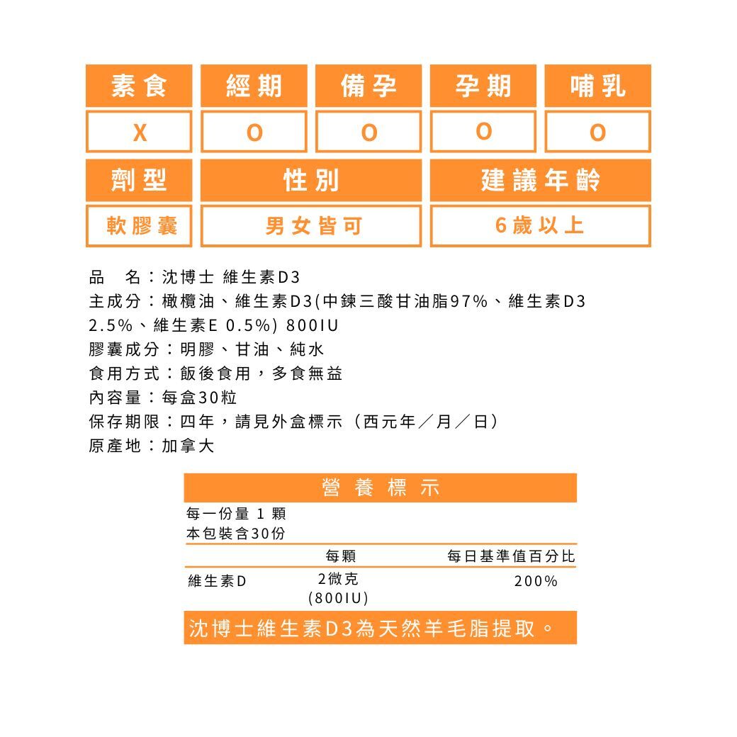 。加拿大原裝進口 足量800IU維生素