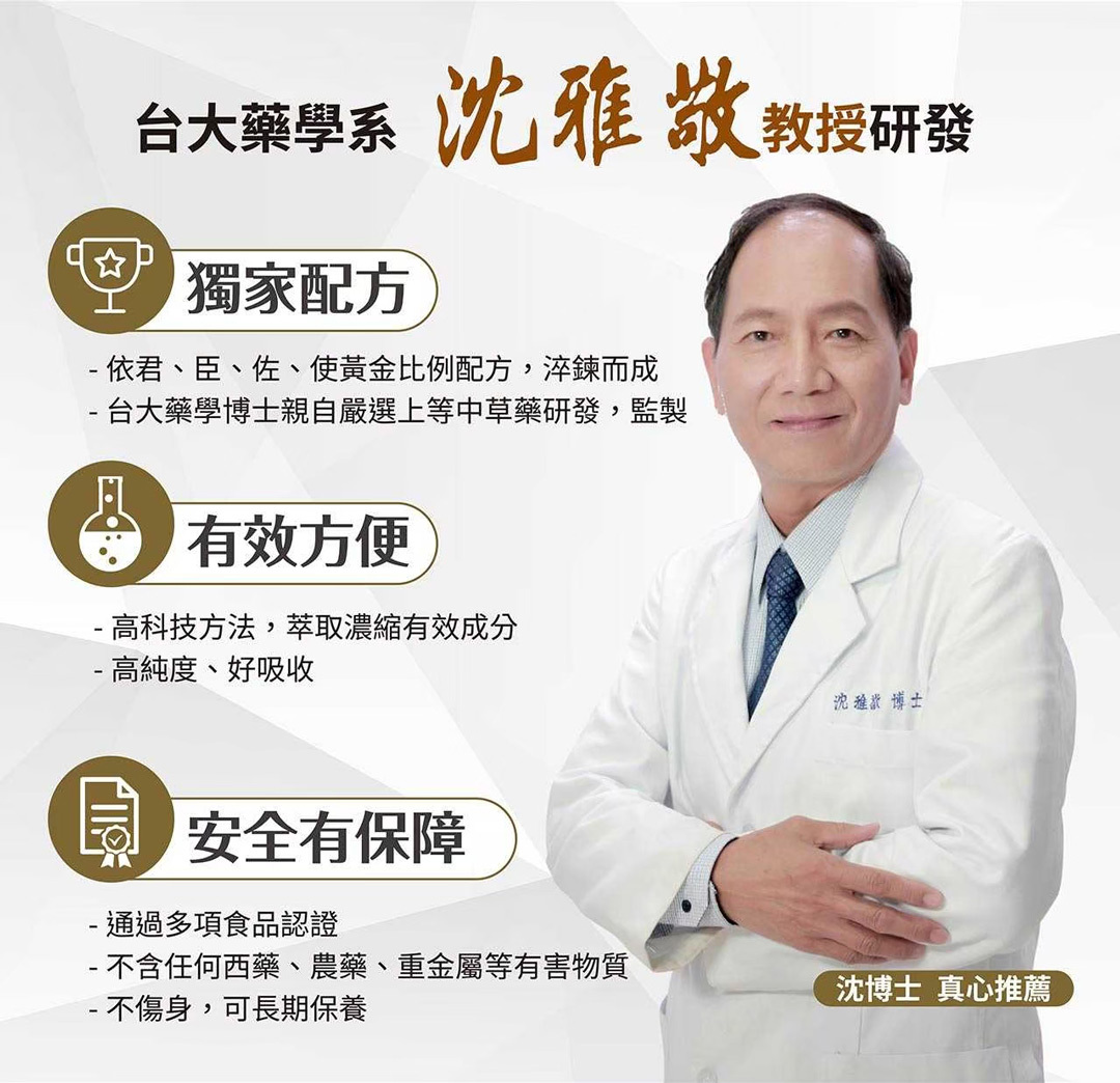◆ 台灣大學藥學系名譽教授沈雅敬研發