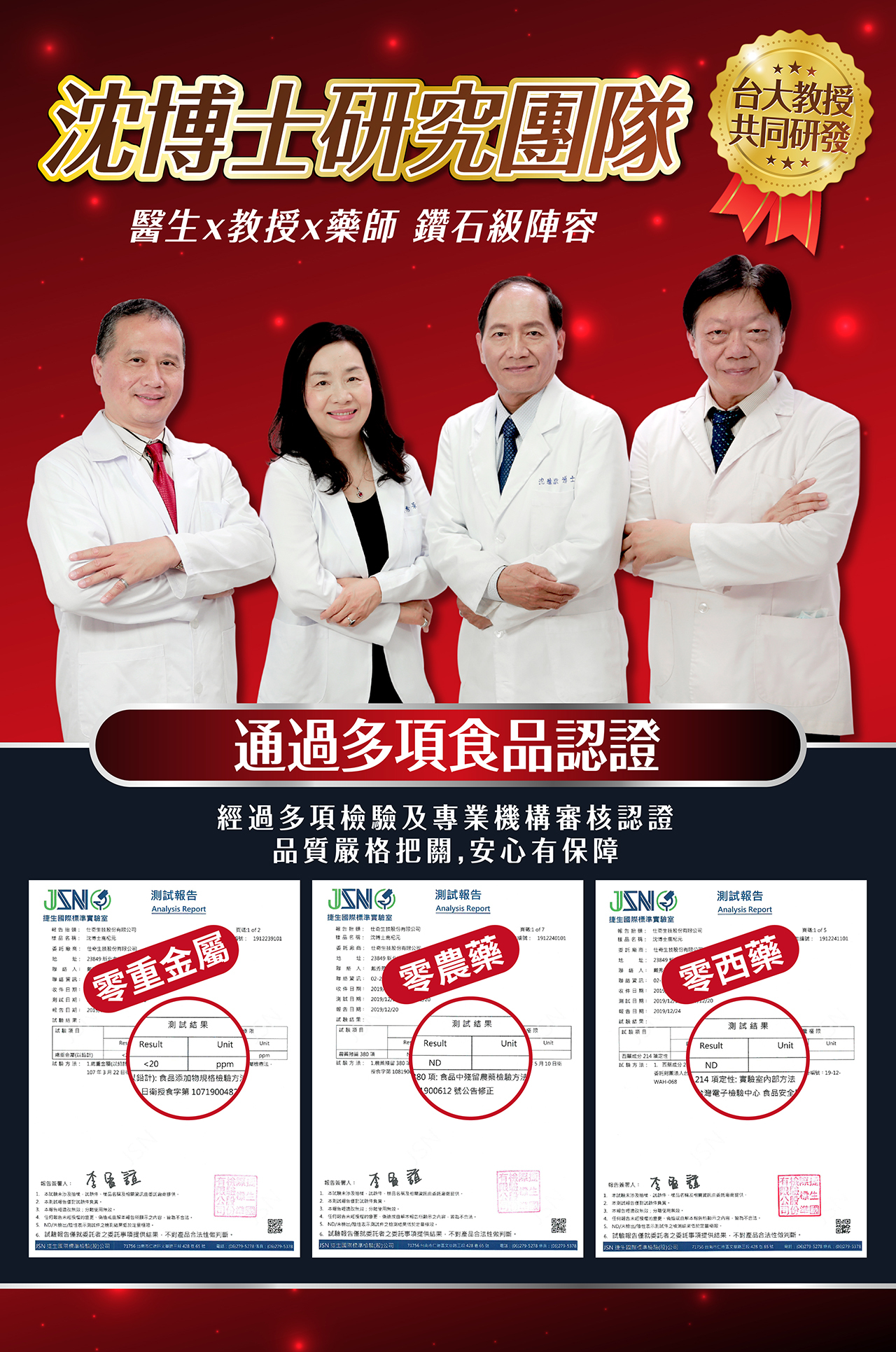 本產品檢驗合格不含農藥、重金屬、防腐劑、西藥(壯陽藥、抗生素、類固醇、止痛劑等)