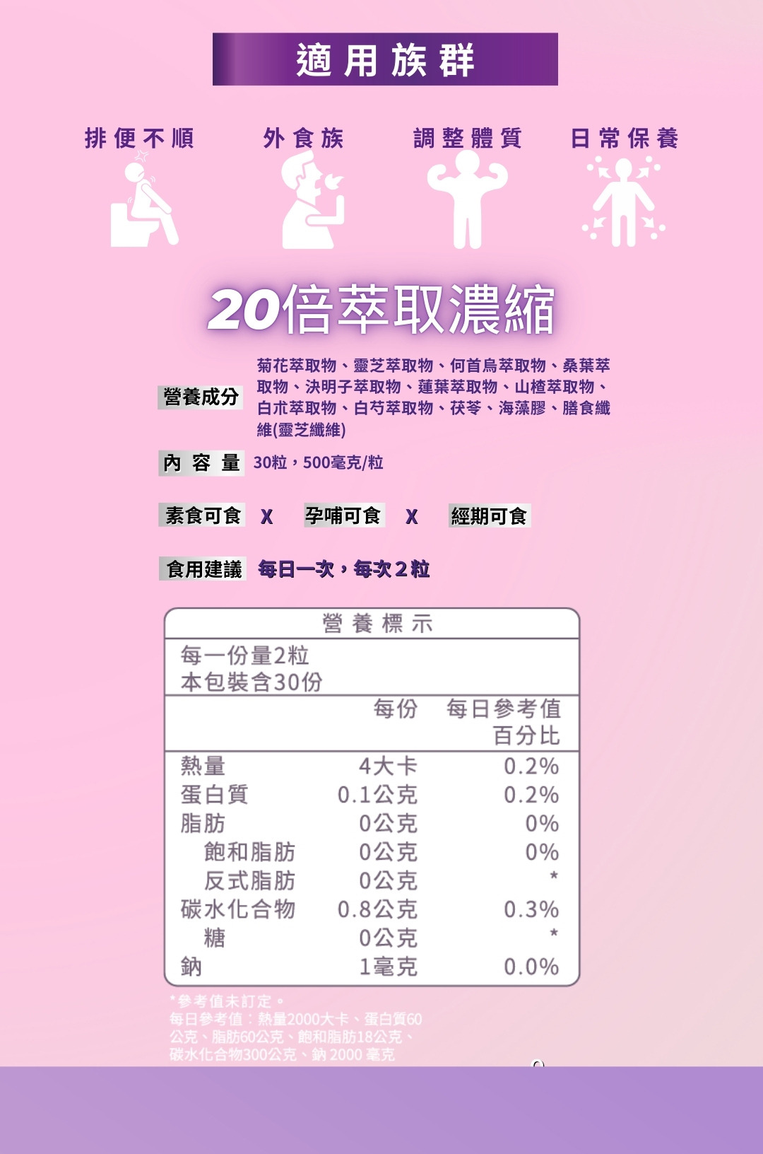 ◆ 天然植萃,不含任何添加物,不含硬脂酸鎂,不含麥芽糊精,不含二氧化矽